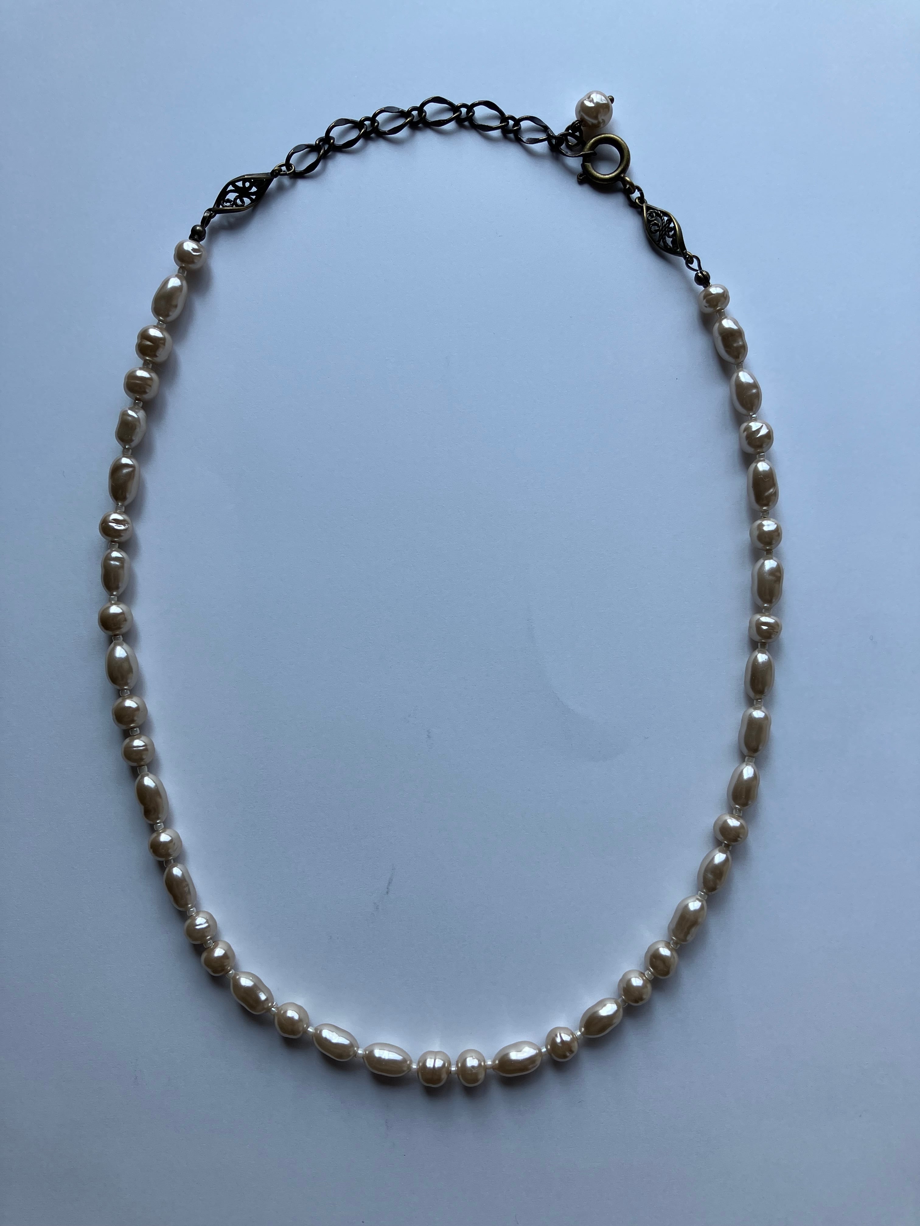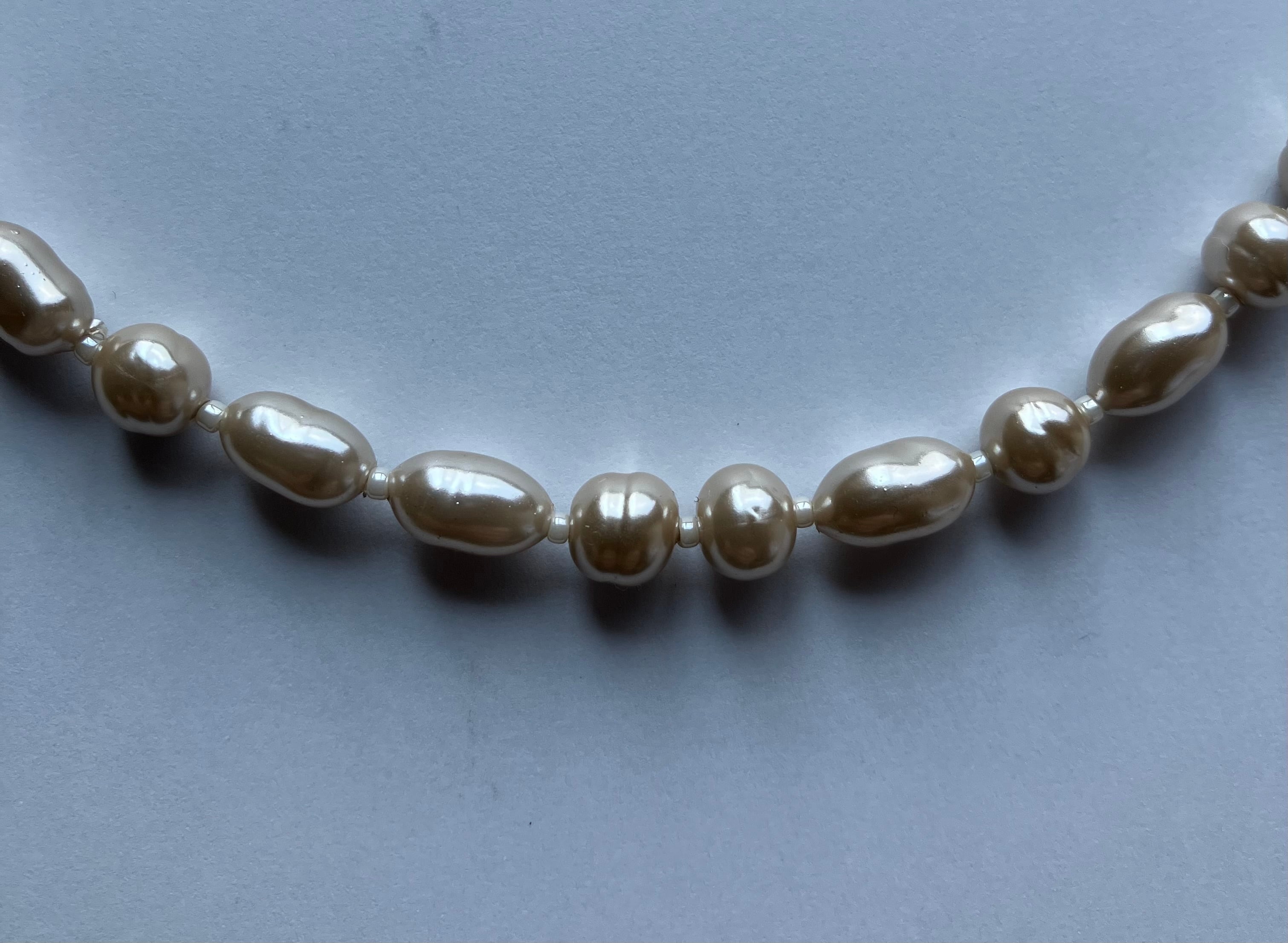 バロック型ランダム/ガラスパールネックレス(No.Nec25-8-PKBE-2)